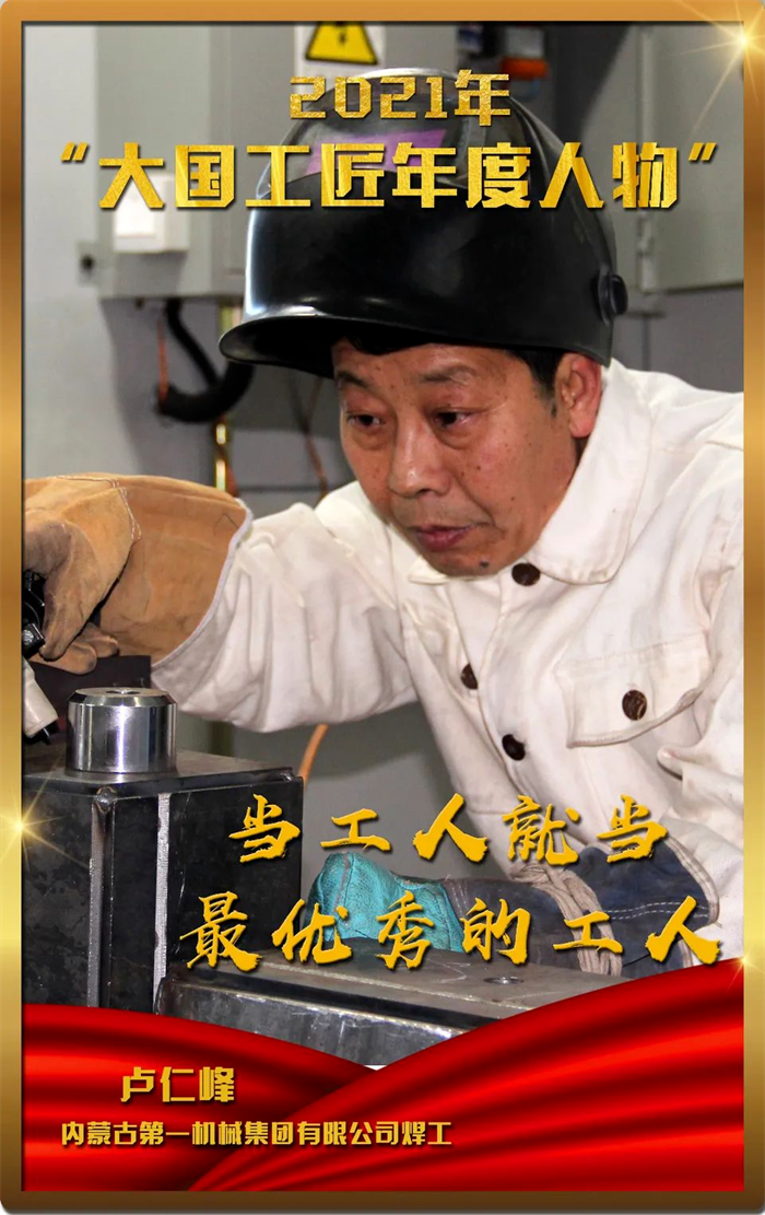 由中华全国总工会、中央广播电视总台联合举办的2021年“大国工匠年度人物”发布活动,于2022年3月2日晚揭晓最终名单,中国兵器工业集团内蒙古第一机械集团有限公司第三分公司焊工卢仁峰是内蒙古自治区唯一入选的工匠人物,也是自2018年度开展大国工匠年度人物推选活动以来,内蒙古自治区首位入选大国工匠年度人物的劳模