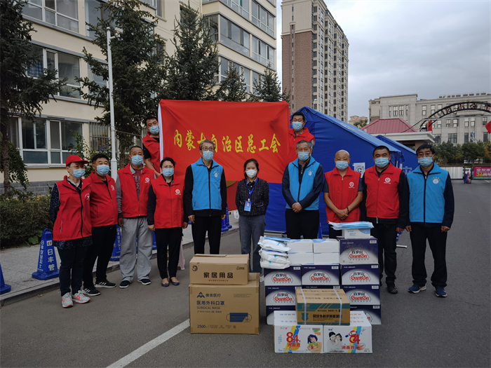 自治区总工会第一时间组建由自治区总工会副主席傲木格、自治区总工会经审会主任李锋杰担任组长的总工会疫情防控志愿服务队,积极参与社区防疫工作