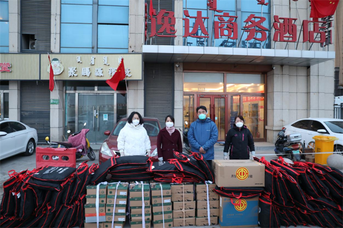 自治区总工会副主席赵大军来到呼和浩特民族学院卡点,慰问抗疫一线医护和保障人员,为大家送上保暖冬衣