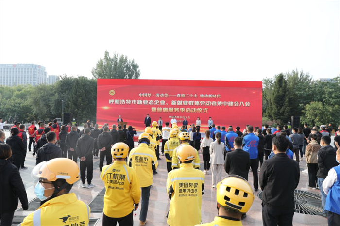 呼和浩特市总工会举行新业态企业、新就业群体劳动者集中建会、入会暨普惠服务季启动仪式