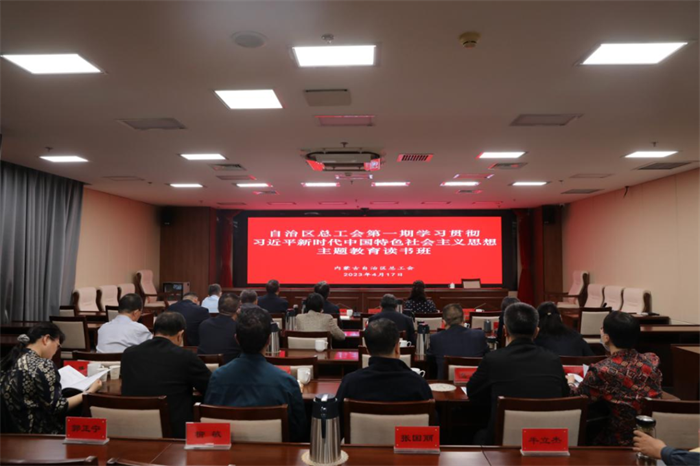 为扎实开展学习贯彻习近平新时代中国特色社会主义思想主题教育,按照自治区党委部署要求和自治区总工会主题教育实施方案,自治区总工会于4月17日至21日,利用5天时间,举办第一期主题教育读书班,组织区总领导和各部门单位主要负责人全面、系统、深入学习习近平新时代中国特色社会主义思想,不断增进对党的创新理论的政治认同、思想认同、理论认同、情感认同,夯实坚定拥护“两个确立”、坚决做到“两个维护”的思想根基。