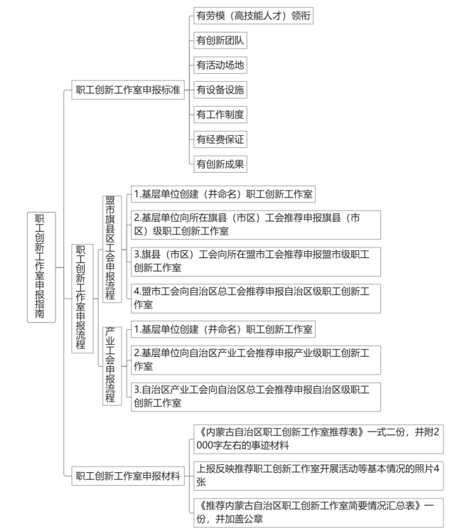 3.基层单位不可同时向盟市旗县区工会或自治区产业工会申报创新工作室,只能选择其中一种方式进行申报。