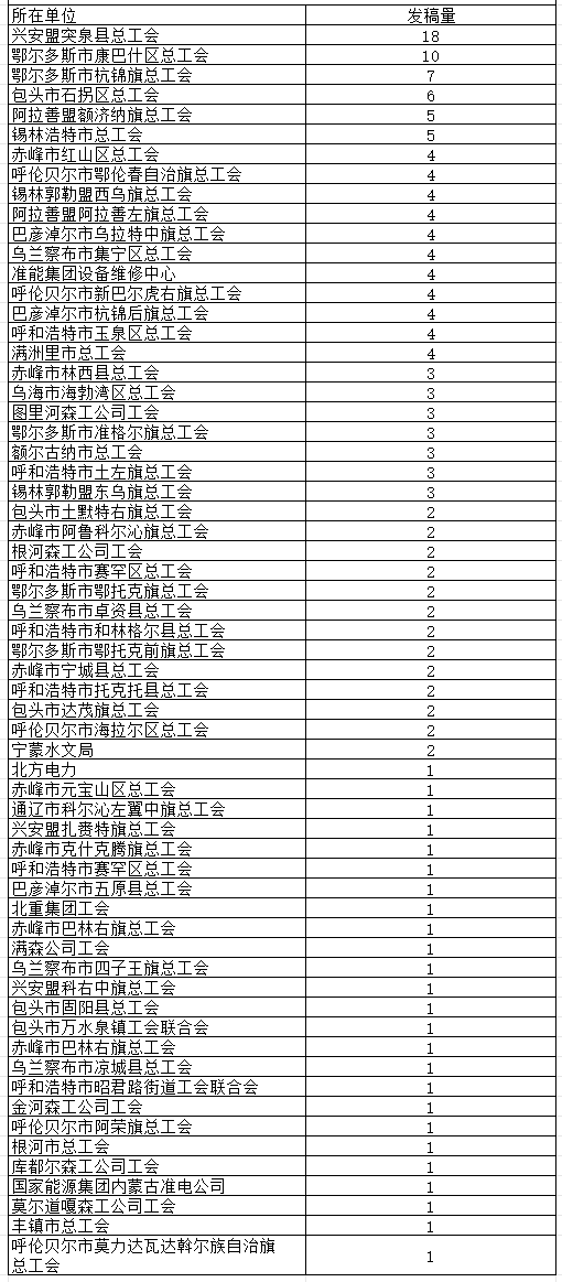 自治区总工会网站2023年8月基层单位发稿量排行榜