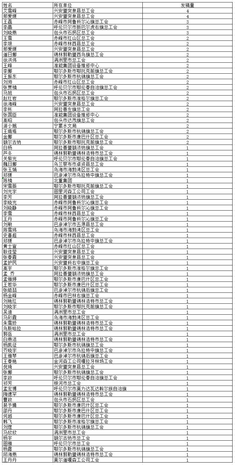 自治区总工会网站2023年8月基层单位个人发稿量排行榜