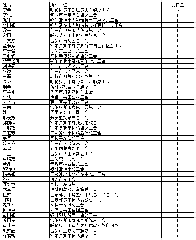 自治区总工会网站2023年9月基层单位个人发稿量排行榜