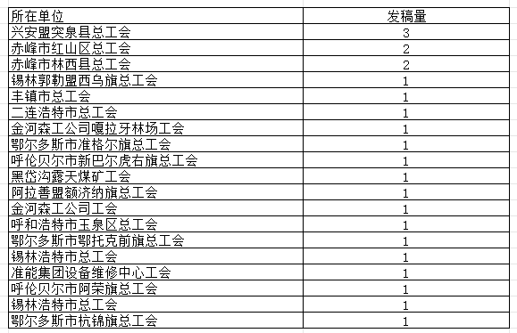 自治区总工会网站2023年10月基层单位发稿量排行榜