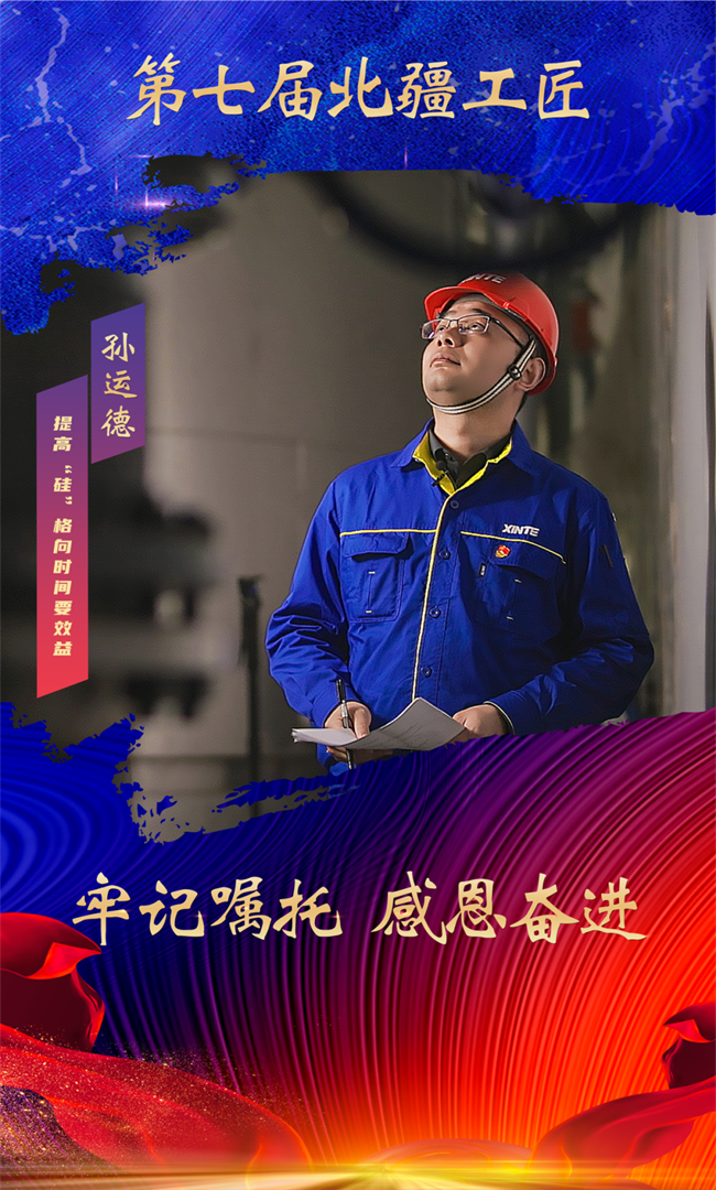 孙运德,内蒙古新特硅材料有限公司总经理助理兼还原车间主任,工程师。优化工艺流程,减少工艺管线及配套阀门仪表,减少设备投资2000余万元;全程参与研发及生产,结合这些经验,他带领团队先后获得专利10余项,并获得公司级的个人或集体17项先进荣誉;在内蒙古包头项目中,进行了多项还原工艺改进,只在还原炉工艺控制上改进气场均匀,增加副产蒸汽质量,就申请专利3项,后期生产可降低能耗、提升多晶硅质量,创造经济效益3000万元/年。