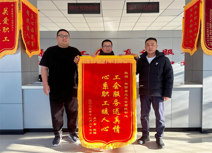 新年的第一面锦旗分外红。林西县总工会当以此面锦旗为动力,发挥好工会的桥梁和纽带作用,不断深化服务,为职工办实事、做好事、解难事,让职工群众真正感受到“娘家人”的温暖。(林西县总工会)