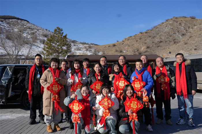 大家迎着冬日暖阳沿山路而上。从秦长城脚下登顶秦长城,全程共2公里,在每一个打卡点工作人员为大家发放了象征着幸福、团圆寓意的中国结和“小喜龙”挂件。