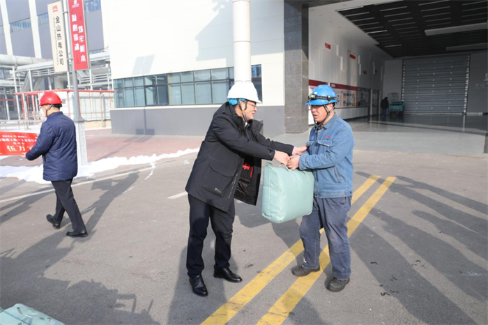 自治区总工会党组成员、副主席包铁强为金山热电公司职工送上慰问品