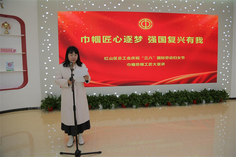 近日,赤峰市红山区总工会走进红山区婚姻登记中心,以“巾帼匠心逐梦 强国复兴有我”为主题,开展“巾帼劳模工匠大宣讲”活动。邀请自治区五一巾帼标兵获得者张倩,赤峰市五一劳动奖章、自治区优秀环卫工人李晓艳为现场女职工分享学习工作经历,80余名职工现场聆听。