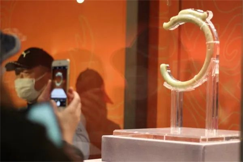 ▲观众在“何以中国”特展上拍摄玉龙。中国民族报社记者文静摄