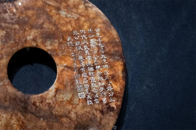 ▲北京故宫博物院收藏的良渚文化玉璧,上有乾隆题字。(图片来源:视觉中国)