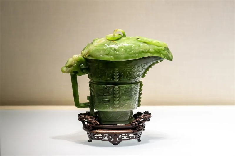 ▲北京故宫珍宝馆中的清代碧玉雕司寇匜(图片来源:视觉中国)
