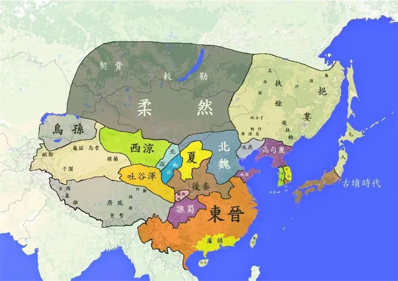 ▲魏晋南北朝时期形势图(图片来源:中国疆域历史地图集)