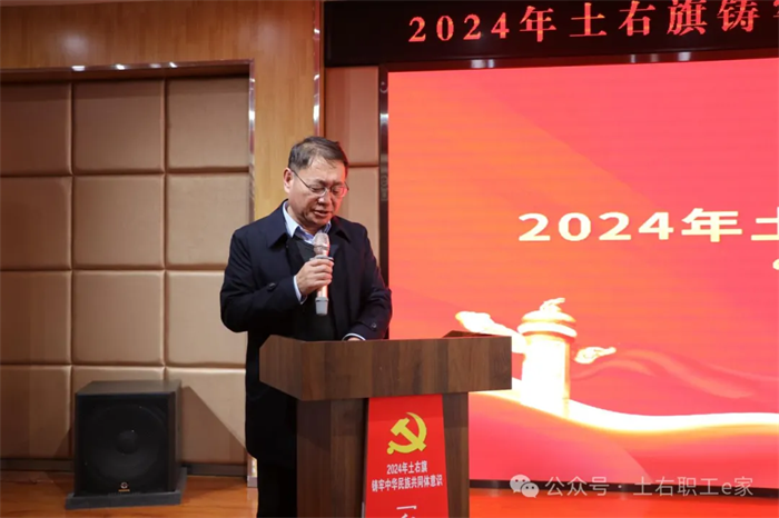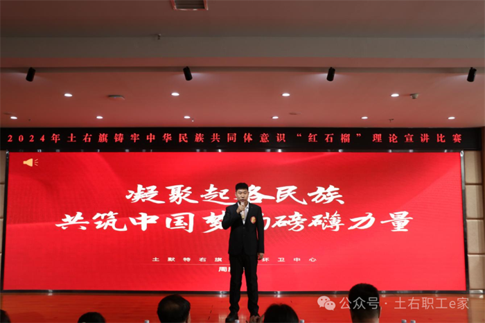 3月21日,2024年土默特右旗铸牢中华民族共同体意识“红石榴”理论宣讲比赛在旗敕勒川社区举行,旗人大常委会党组副书记、副主任,旗总工会主席周建军致开场词。
