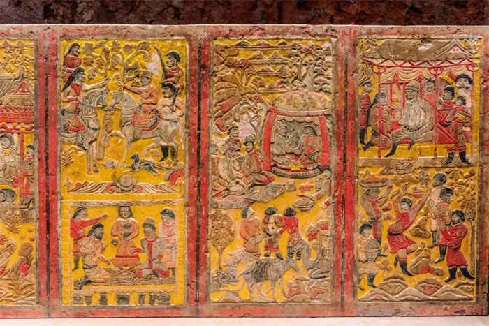 ▲陕西历史博物馆馆藏北周安伽墓围屏石榻,右侧图像中的胡人乐舞反映了西域乐舞在中原地区的流行与多族群文化交融的盛况(图片来源:视觉中国)
