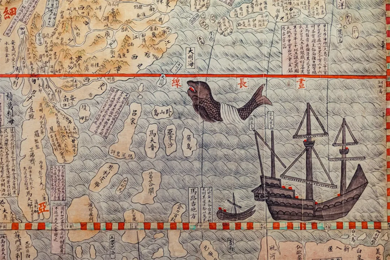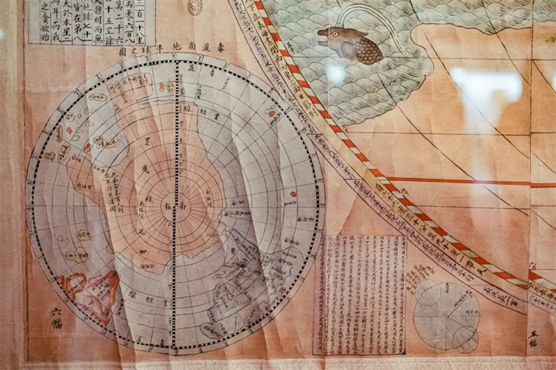 在中西方地理观念碰撞交融中产生的《坤舆万国全图》,不仅为明清之际的中国带来崭新的西方地理学知识,同时也接纳了大量的中国地理和典籍知识。在这种交流互鉴中,东西方文明彼此发现、彼此启迪。这幅地图也展示了中华文明突出的包容性,中华文化对世界文化兼收并蓄的开放态度。