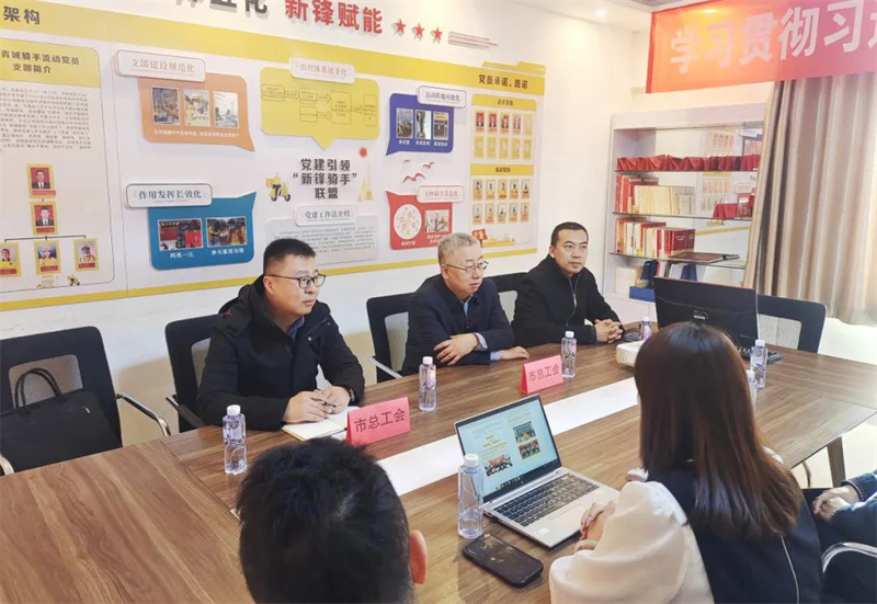 调研组一行同美团加盟企业负责人进行面对面交谈,详细了解美团加盟企业的规模和经营情况,对工会组织的作用发挥以及工会组建中存在的问题进行了梳理。