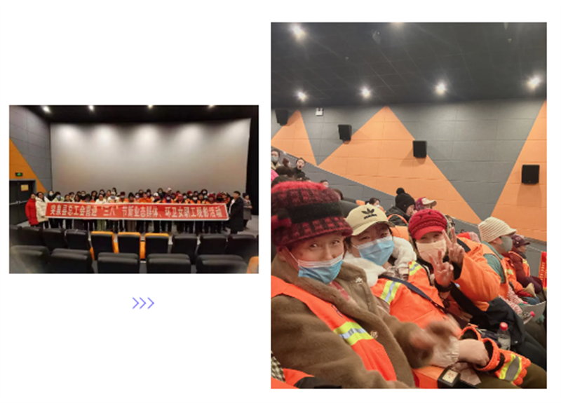 为深入学习宣传贯彻党的二十大精神,进一步加强对新就业群体的服务引领和关心关爱,落实习近平总书记关于“全社会都要尊重环卫工人”的重要指示精神。突泉县总工会心系新业态群体、环卫女职工,在第114个“三八”国际劳动妇女节来临之际,组织开展了一场喜迎“三八”节新业态群体、环卫女职工观影活动。