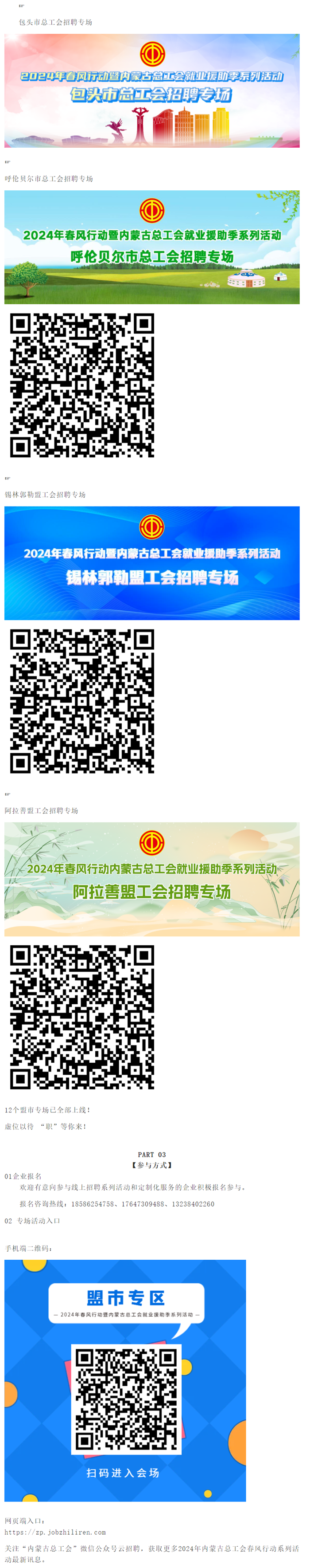 2024年春风行动|工会帮就业盟市专场招聘第二波乘风上线