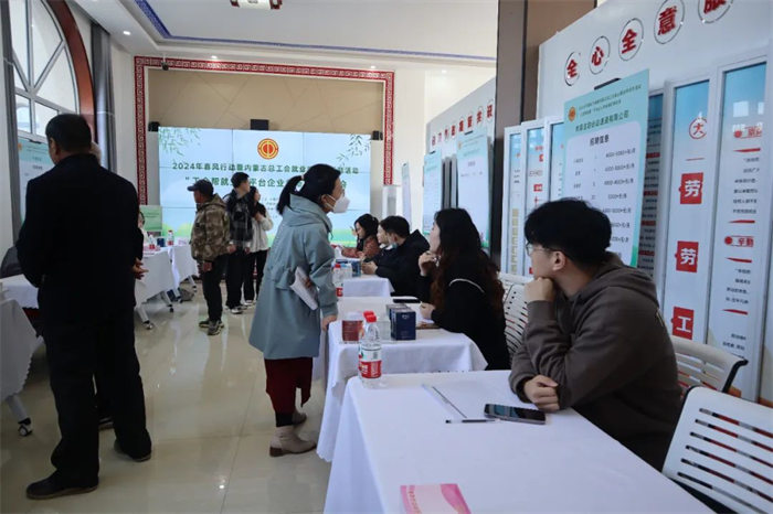 为全面贯彻落实党中央、国务院关于就业工作决策部署,全力稳就业、保用工、促发展,3月30日,由内蒙古自治区总工会、内蒙古自治区邮政管理局主办,呼和浩特市总工会、呼和浩特市邮政管理局承办,新城区总工会协办的2024年春风行动暨内蒙古总工会就业援助季系列活动“工会帮就业”平台企业专场双选会在新城区劳动者港湾成功举办。