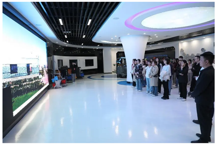 第二站到达京东物流供应链(呼和浩特)产业基地。工作人员带领大家参观了基地的展厅、健身房、贵宾厅等地,让大家亲身感受到良好的工作氛围和环境,并向大家介绍了企业信息以及相关实习、招聘岗位,对大家提出的问题进行了解答。