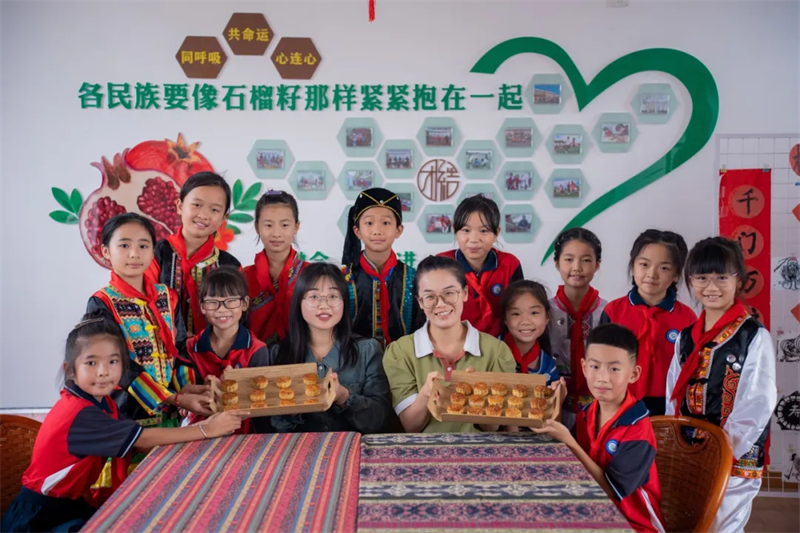 ▲浙江长兴县泗安镇实验小学不同民族的学生和老师