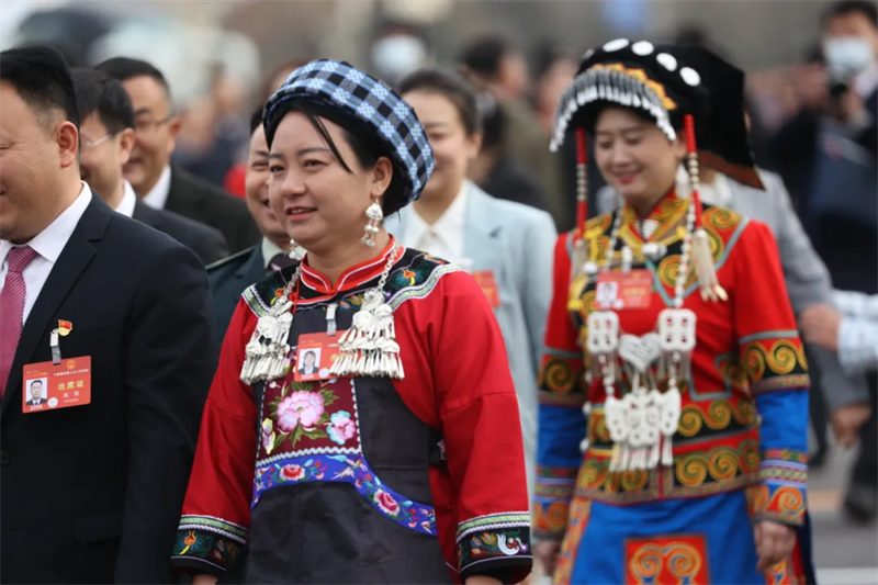 身穿民族服饰陆续步入会场。(图片来源:视觉中国)