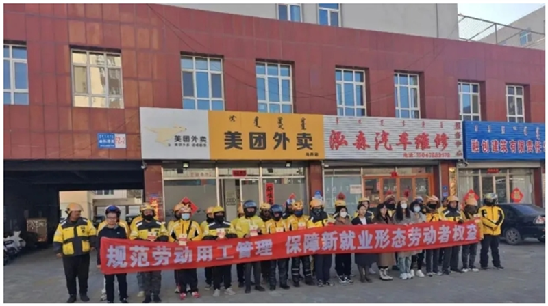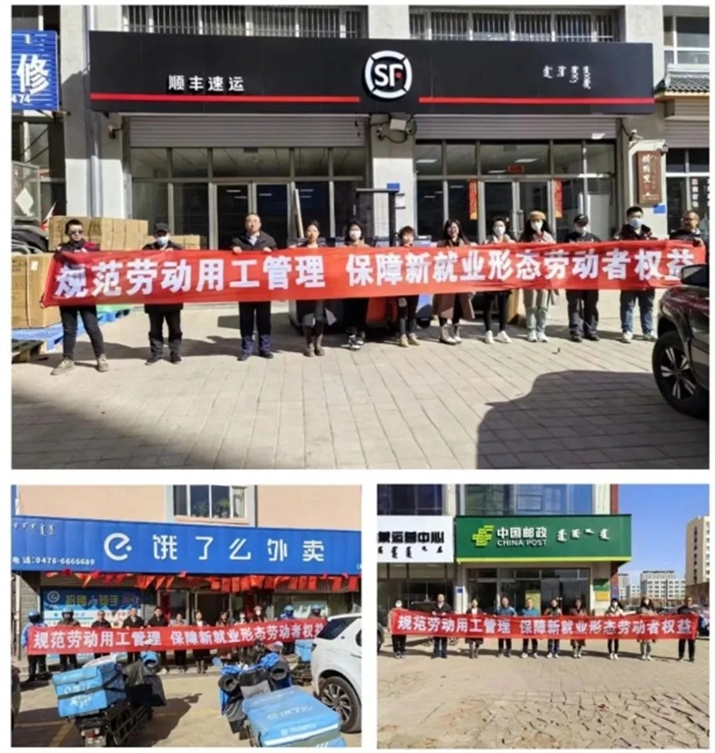为推动维护新就业形态劳动者劳动保障权益政策落地实施,防范化解劳动纠纷,形成关心、关注、维护新就业形态劳动者权益良好社会氛围,3月29日,翁牛特旗旗总工会法律服务分队联合旗人社局、旗工商联深入美团外卖乌丹站、饿了么外卖、顺丰速运、邮政快递开展“劳动筑梦•法治相随”新就业形态劳动者公益法律服务专项行动。