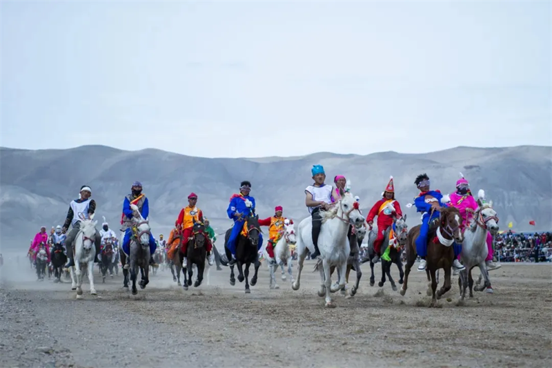 ▲西藏阿里地区“噶尔恰钦”赛马会在噶尔县赛马场开幕。来自阿里地区各县的数十名骑手参加了