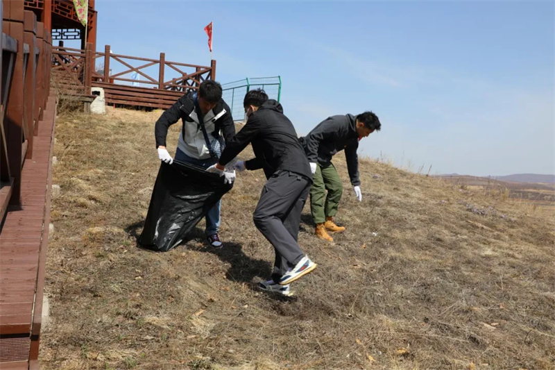 活动伊始,党员志愿者们来到索尔奇湿地公园,对湿地周边的塑料袋、塑料瓶、烟头、废弃物等白色垃圾进行地毯式清理,充分发扬“不怕苦、不怕脏、不怕累”的精神,为阿荣旗自然环境保护贡献自己的一份力量。