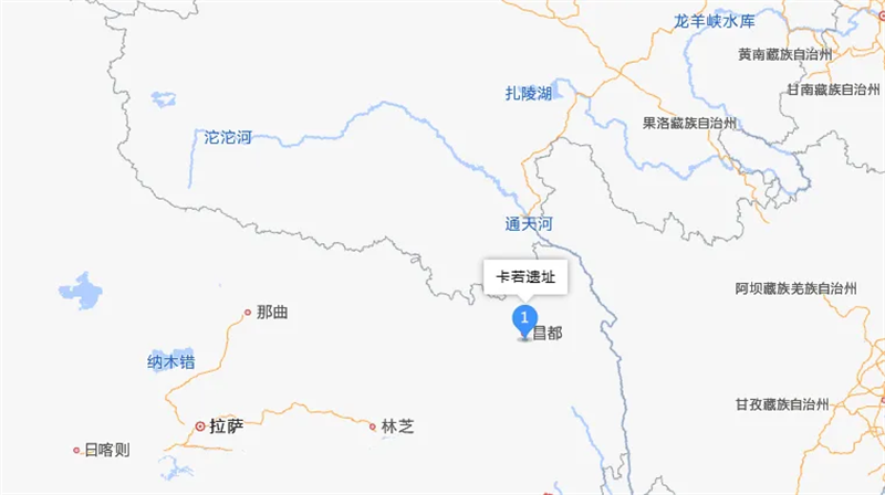 ▲位于西藏自治区昌都市卡若区以南约12公里处的卡若遗址(图片来源:高德地图)
