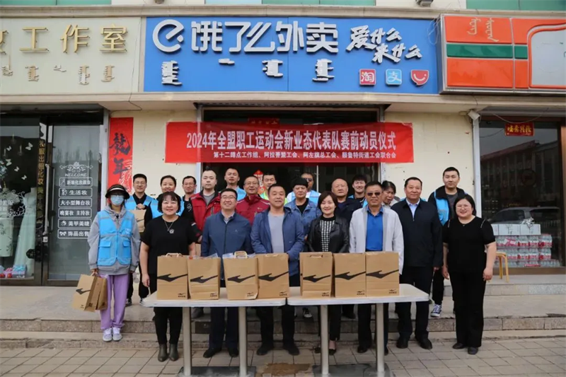 值此五一国际劳动节、2024年全盟职工运动会开幕在即,为进一步丰富职工文化体育生活,落实全总、区总关于关心关爱新就业群体的安排部署,4月19日,阿拉善盟工会联合第十二蹲点工作组举行2024年全盟职工运动会新业态代表队赛前动员仪式,盟、旗、街道三级工会领导参加活动。