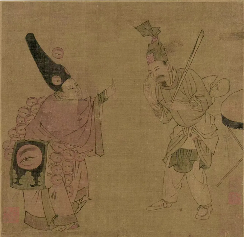 《卖眼药图》中这位浑身挂着眼睛图案的“眼科医生”,实际上是南宋杂剧《眼药酸》中的角色。他身上挂着的“眼睛”,既是装眼药的药袋,也是一种“招牌”。