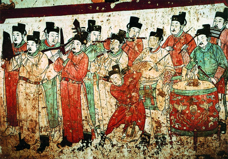 ▲河北省宣化下八里张世卿辽墓东壁的《散乐图》(图片来源:《中国大百科全书》第三版网络版)