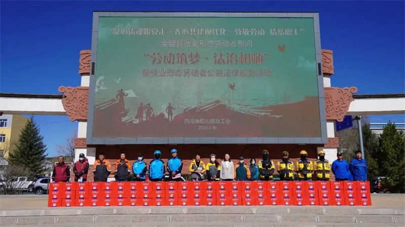 4月30日,西乌珠穆沁旗总工会举办2024年“凝心铸魂跟党走·齐心共建现代化——致敬劳动 情系职工”新就业形态劳动者慰问暨“劳动筑梦·法治相随”新就业形态劳动者公益法律服务活动。