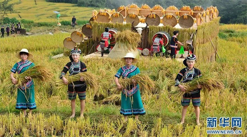 ▲哈尼族群众庆祝丰收(资料图)。