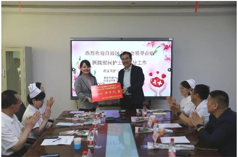 自治区总工会党组成员、副主席吴燕平为内蒙古医科大学附属肿瘤医院的护士送上慰问金