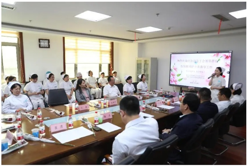 在生机盎然、鲜花烂漫的五月,国际护士节即将来临之际,5月10日,自治区总工会党组成员、副主席吴燕平来到内蒙古医科大学附属肿瘤医院(北京大学肿瘤医院内蒙古医院),与从事护理工作的白衣天使们共同庆祝第113个国际护士节。