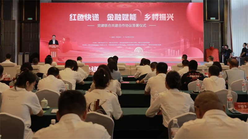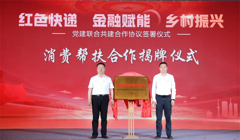 为切实发挥党组织服务社会民生作用,探索通过联合共建、整合党建资源、共同实施项目的方式方法,推动党建工作与主责主业深度融合,切实提升党建共建的合力与实效,在完善农村牧区寄递物流体系,构建综合金融服务体系,赋能农牧业提质增效和农牧民创富增收等方面发挥党建赋能作用,5月22日,自治区总工会与自治区邮政管理局、自治区农牧厅、国家金融监督管理总局内蒙古监管局、中国邮政集团有限公司内蒙古分公司、中国邮政储蓄银行股份有限公司内蒙古分行、中原农业保险股份有限公司内蒙古分公司、内蒙古快递行业党委共同举行“红色快递 金融赋能 乡村振兴”党建联合共建合作协议签署仪式,与自治区农牧厅为“消费帮扶助力乡村振兴”落地项目揭牌,与合作单位共同启动“标准化村级寄递物流综合服务点共建”项目。