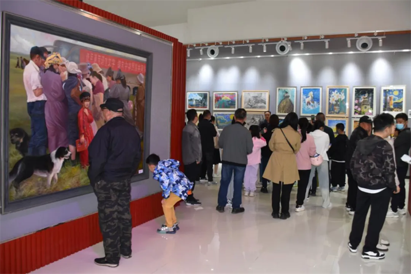 为深入贯彻落实习近平文化思想,铸牢中华民族共同体意识,弘扬北疆文化,增进文化认同,丰富职工群众精神文化生活,构筑赤峰市松山区各族群众共有精神家园。5月12日,由松山区总工会、松山区民族事务委员会、松山区文化旅游体育局主办,松山区美术家协会、松山区文化馆、松山区千翼艺术学校承办的“艺心守望同心圆 石榴花开美松山”赤峰市松山区职工、青少年美术作品展在松山区松北综合场馆一楼展厅开幕。
