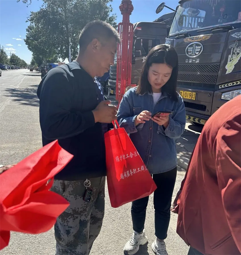 活动现场,县总工会工作人员向货车司机发放了工会业务知识宣传手册,详细讲解了“北疆工惠”APP的认证步骤、完善个人信息和参加活动的操作流程,让货车司机更好地了解到加入工会的流程和好处。