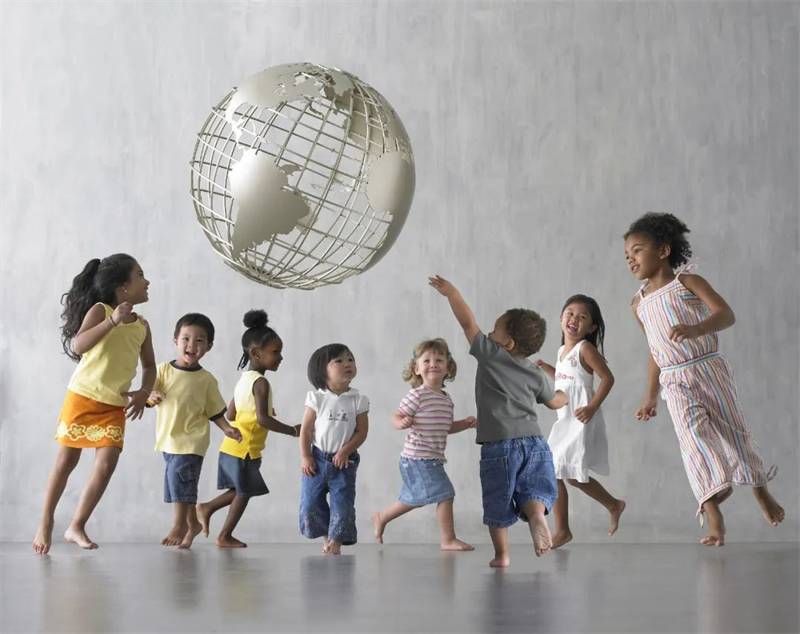 ▲世界各国儿童在围绕地球模型玩耍(图片来源:视觉中国)