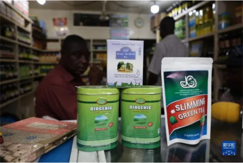 ▲在加纳首都阿克拉市中心一处商店售卖的中国茶(图片来源:新华网)