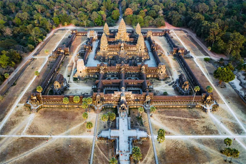 ▲鸟瞰吴哥窟寺庙 (图片来源:视觉中国)
