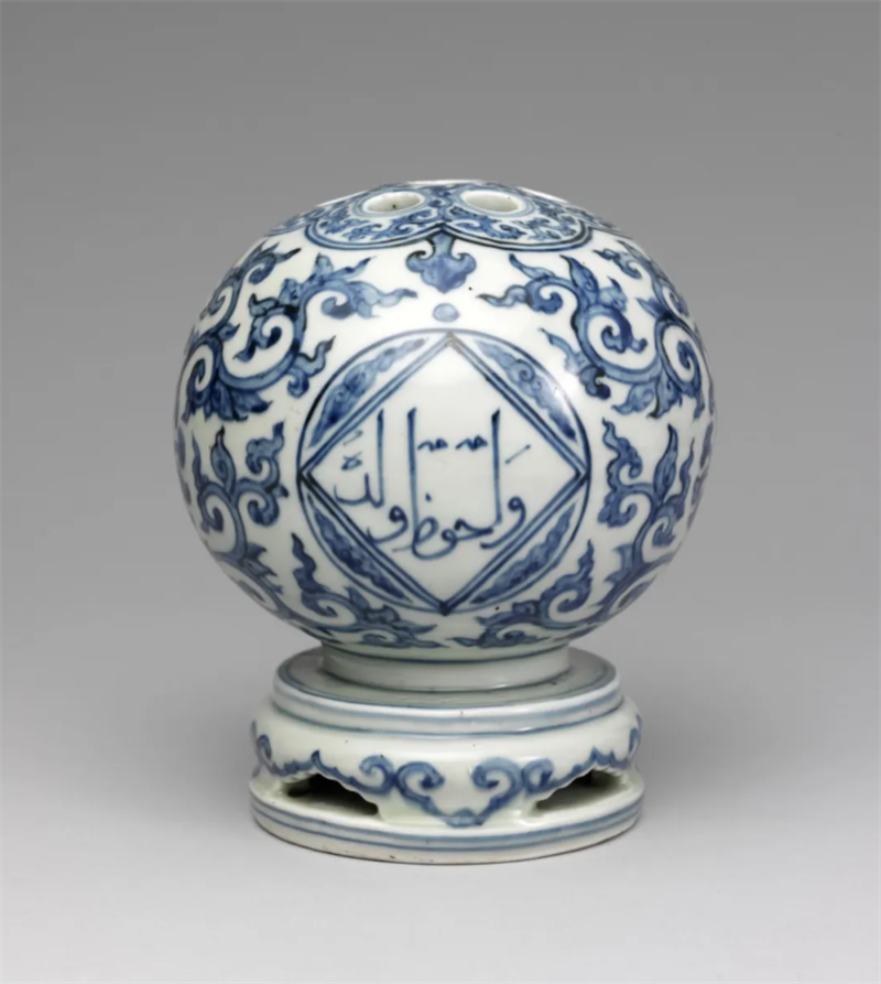 ▲明正德青花瓷阿拉伯文七孔花插 台北故宫博物院藏