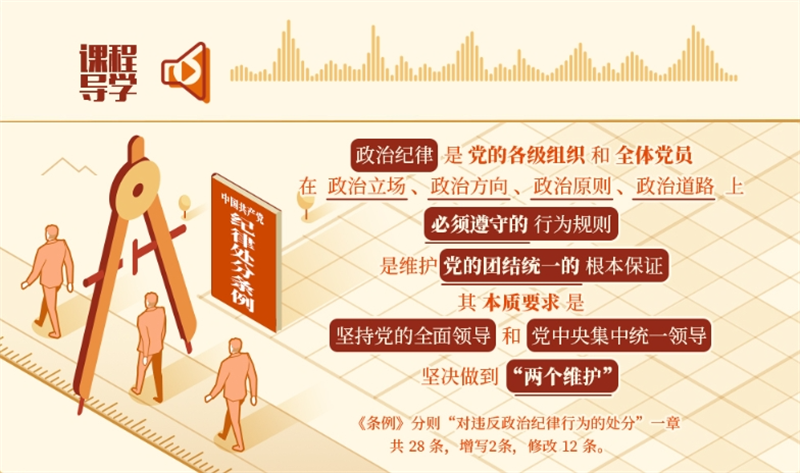 《中国共产党纪律处分条例》第二编分则第六章是对违反政治纪律的行为的处分规定。新修订的纪律处分条例第六章共 28 条,增写2条,修改 12 条。