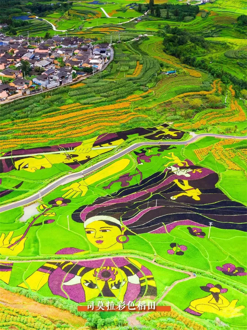 ▲司莫拉彩色稻田美景。(图片来源:云南发布)