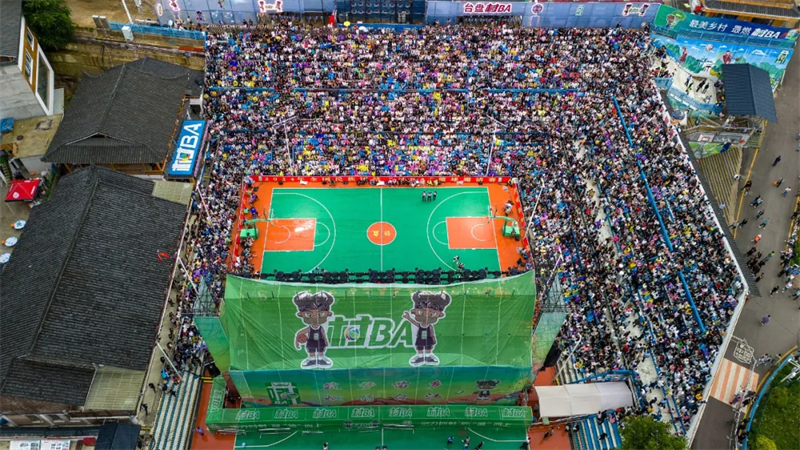 球场上角逐激烈、活力四射,观众席上锣鼓喧天、欢呼不断。这个夏日,在贵州台江县台盘村,第十二届全国少数民族传统体育运动会“同心畅享”系列活动——民族团结“村BA”篮球邀请赛正火热举行。